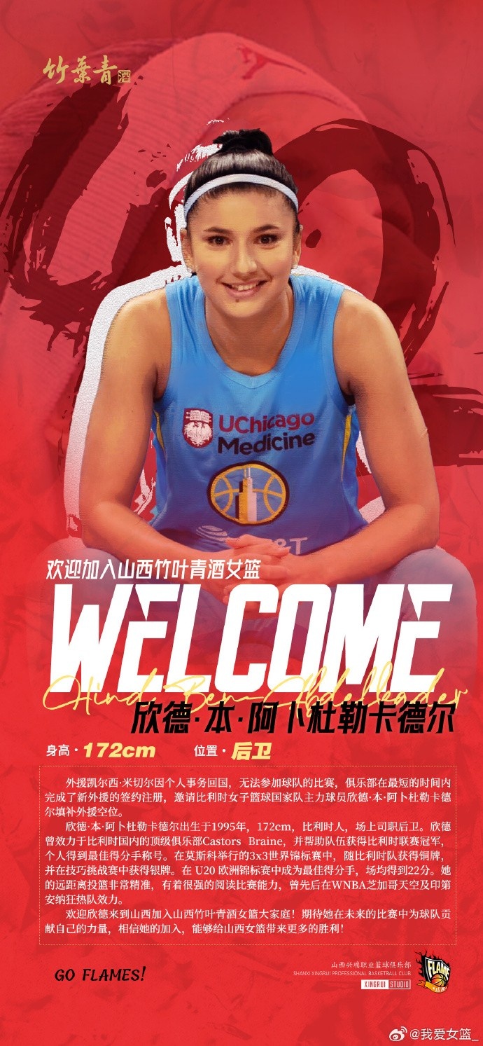 山西女籃官方介紹:外援凱爾西-米切爾因個(gè)人事務(wù)回國(guó),無法參加球隊(duì)的比賽,俱樂部在最短的時(shí)間內(nèi)完成了新外援的簽約注冊(cè),邀請(qǐng)比利時(shí)女子籃球國(guó)家隊(duì)主力球員欣德-本-阿卜杜勒卡德爾填補(bǔ)外援空位。