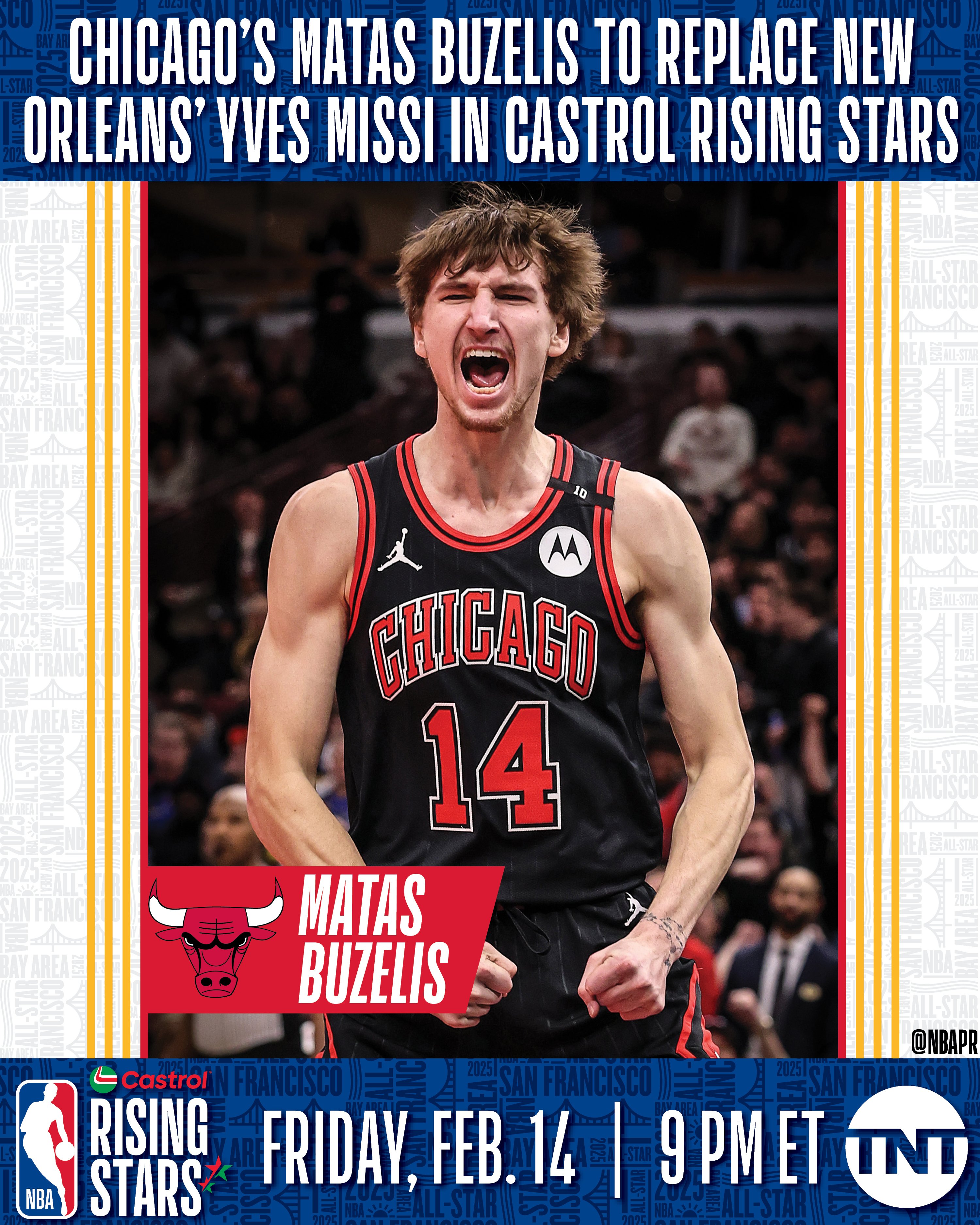 - 官方:公牛前鋒布澤利斯將代替受傷鵜鶘中鋒米西 出戰(zhàn)新秀挑戰(zhàn)賽