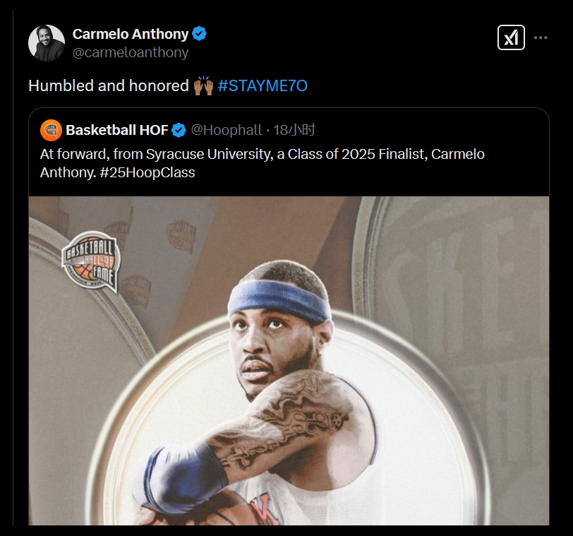 02月16日訊 安東尼更新個人社交媒體,轉(zhuǎn)發(fā)了自己入選2025年名人堂最終候選名單的新聞。“謙卑且榮幸!????????”安東尼寫道。 本文標(biāo)簽: 籃球 NBA 安東尼 尼克斯