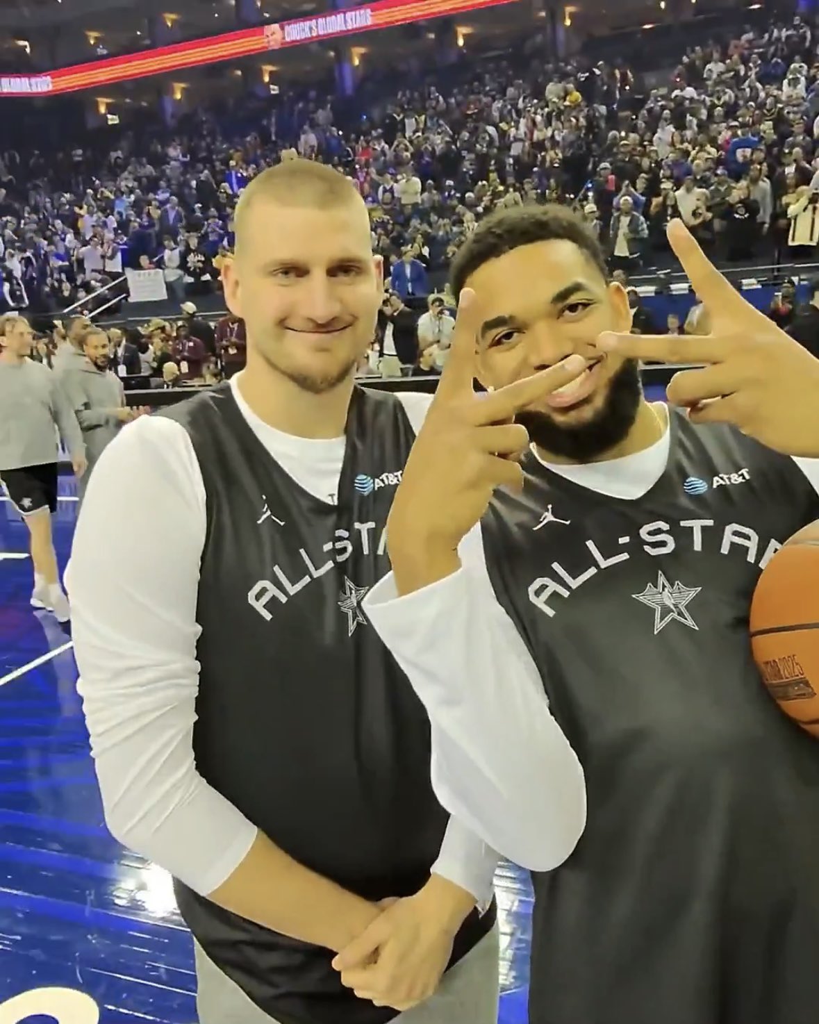 - 可愛捏!約基奇與唐斯在全明星現(xiàn)場合影 唐斯剪刀手&約老師姨母笑