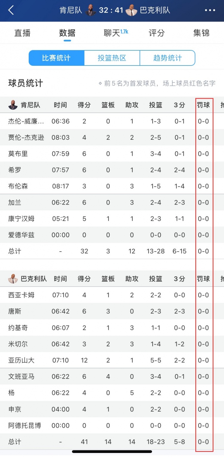 - 突出一個流暢!巴克利隊41-32勝肯尼隊 兩隊全場一個罰球都沒有~
