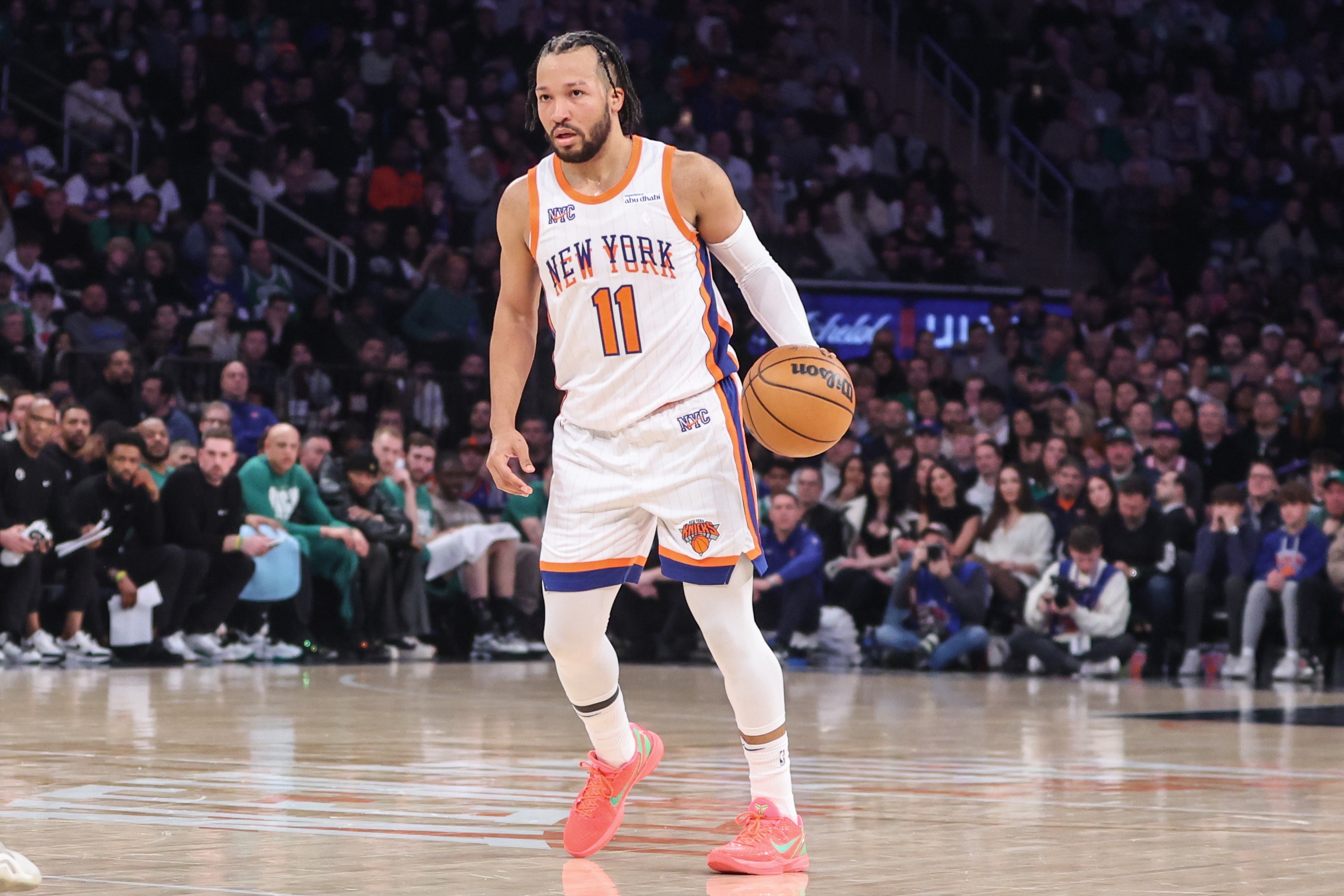3月7日訊 NBA常規(guī)賽今天繼續(xù)進行,尼克斯在客場挑戰(zhàn)湖人。首節(jié)結(jié)束時,尼克斯27比31落后。布倫森首節(jié)打滿12分鐘,7投5中,三分2中1,罰球3中3,拿到14分3助攻。首節(jié)即將結(jié)束時,他還命中了一記高難度壓哨跳投。首節(jié)比賽,尼克斯其他球員中得分最多的是哈特,5分。 本文標簽: 籃球 NBA 尼克斯