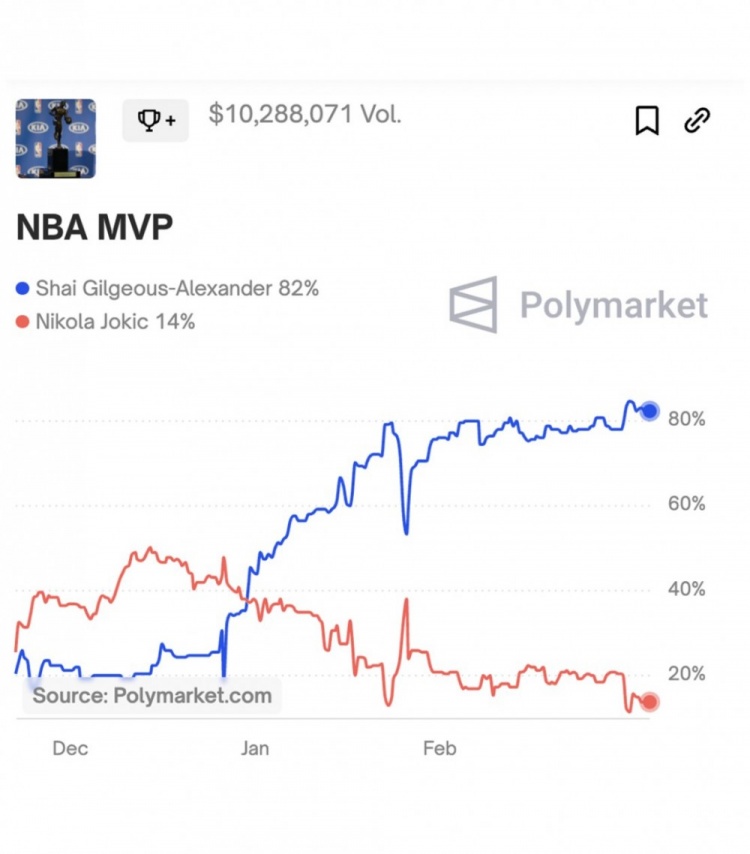 3月8日訊 NBA常規(guī)賽,掘金147-141加時擊敗太陽。本場比賽,約基奇出戰(zhàn)44分55秒,22投13中,其中三分7中3,另外罰球3中2,狂轟31分21籃板22助攻3搶斷!賽后美媒Polymarket更新了MVP概率,約基奇僅有14%,而亞歷山大則高達82%。 本文標簽: 籃球 NBA 掘金 約基奇 雷霆 亞歷山大