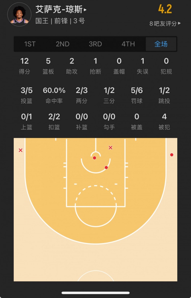 國(guó)王落選秀 艾薩克-瓊斯 登場(chǎng)18.9分鐘