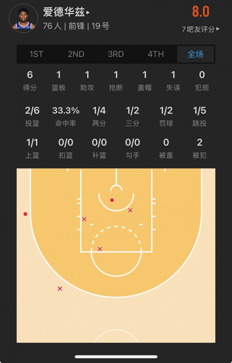 76人落選秀 賈斯汀-愛(ài)德華茲 登場(chǎng)20.5分鐘