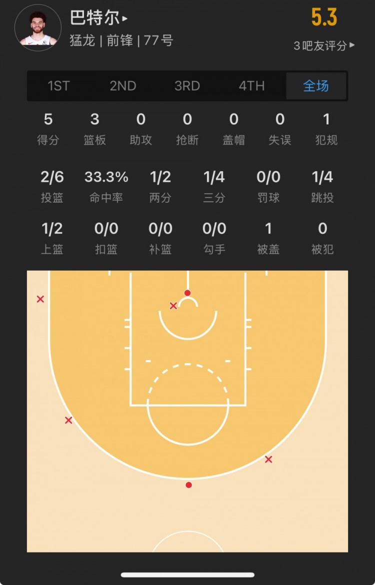 猛龍落選秀 賈米森-巴特爾 登場(chǎng)12.0分鐘