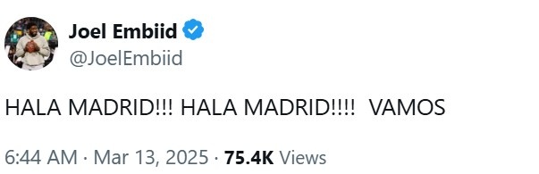 3月13日訊 歐冠1/8決賽次回合,皇馬通過(guò)點(diǎn)球大戰(zhàn)淘汰馬競(jìng),晉級(jí)歐冠八強(qiáng)。恩比德更推道:“加油皇馬!加油皇馬!加油!”勘誤:小編錯(cuò)將標(biāo)題中的晉級(jí)寫(xiě)成了緊急,現(xiàn)已改正,感謝各位吧友批評(píng)指正。 本文標(biāo)簽: 籃球 NBA 76人 恩比德