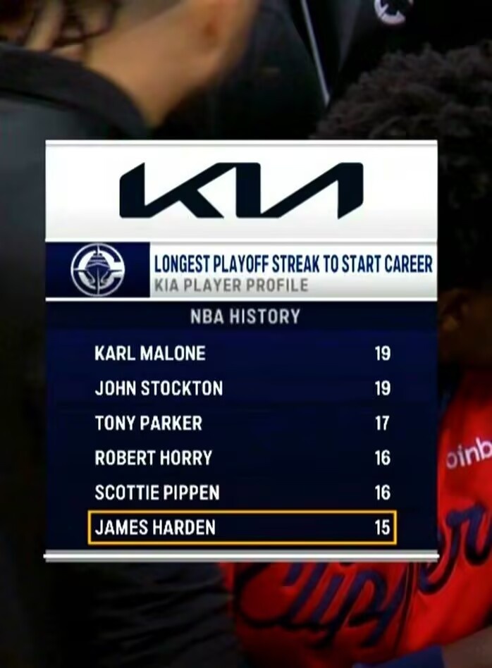 今年穩(wěn)了嗎?哈登生涯前15個賽季均打進季后賽 歷史第4長紀錄