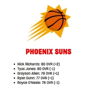1月31日訊 NBA2K本周更新,太陽(yáng)隊(duì)內(nèi)球員的能力值有所變化,新援理查茲由78上漲至80。泰厄斯-瓊斯由81降至80,格雷森-阿倫由78升至79,瑞安-鄧恩由76升至77,羅伊斯-奧尼爾由77降至76。 本文標(biāo)簽: 籃球 NBA 太陽(yáng)