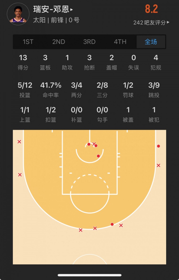 太陽28號秀 瑞安-鄧恩 登場23.2分鐘