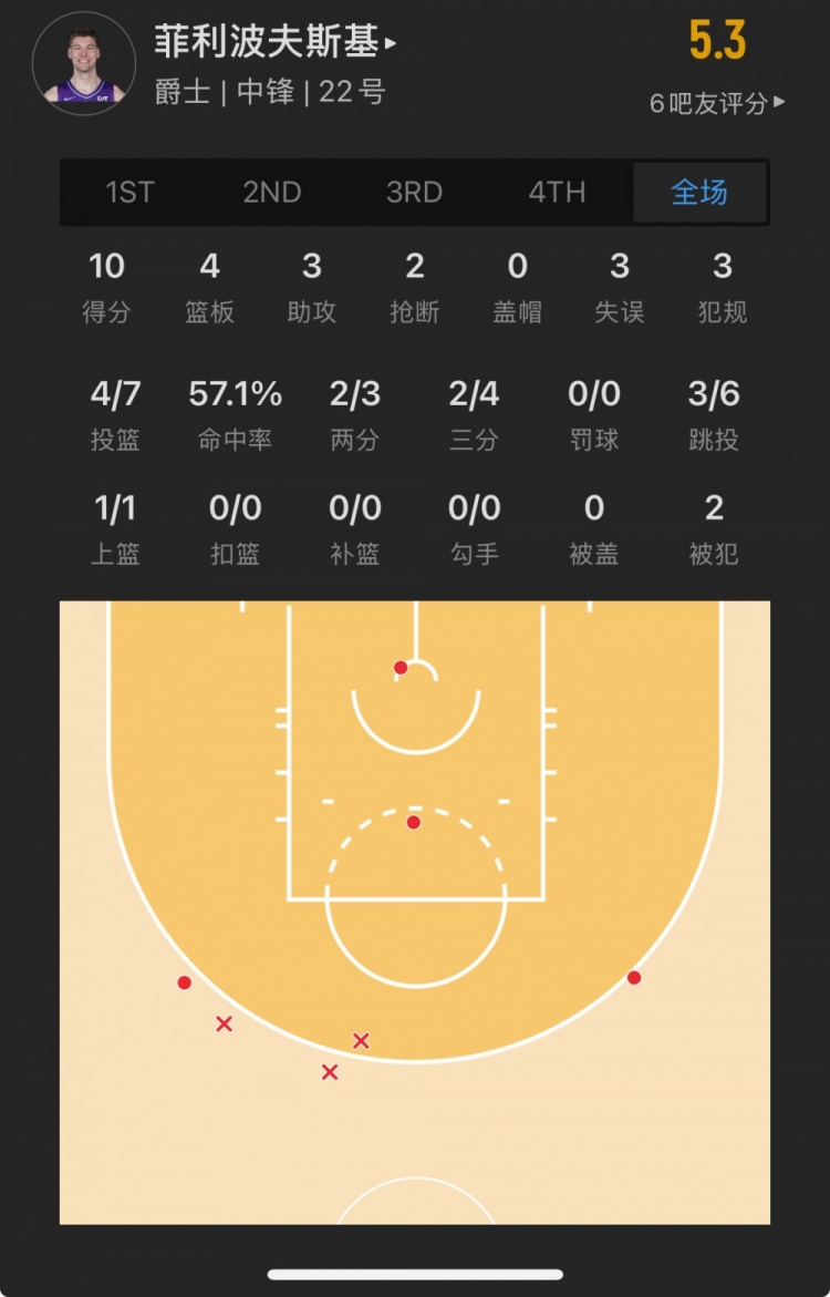 爵士32號秀 凱爾-菲利波夫斯基 登場18.7分鐘