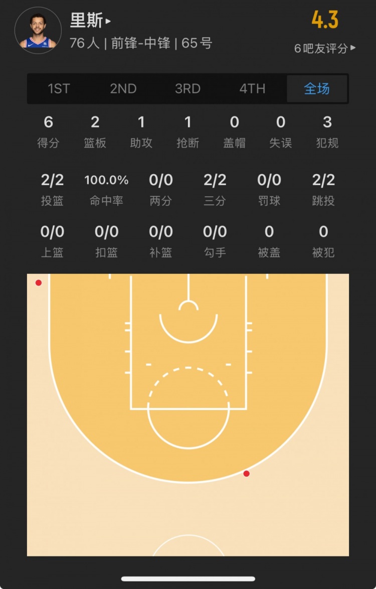 76人落選秀 亞歷克斯-里斯 登場17.4分鐘