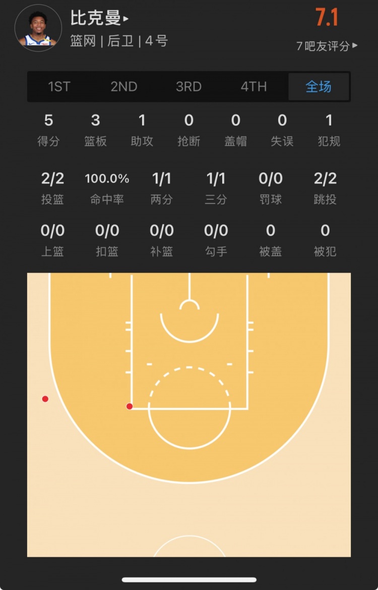籃網(wǎng)落選秀 里斯-比克曼 登場15.0分鐘