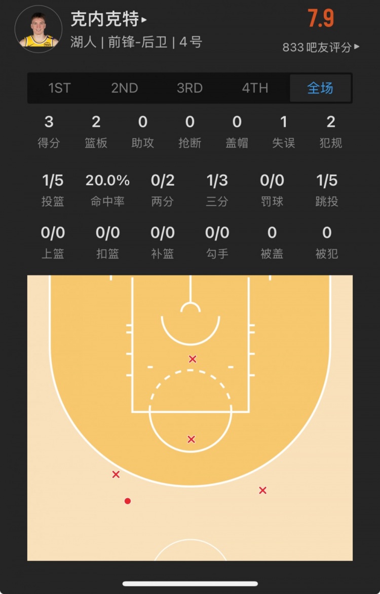 湖人17號秀 道爾頓-克內(nèi)克特 登場15.6分鐘