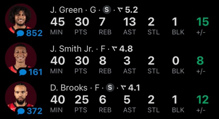 3月18日訊 NBA常規(guī)賽,火箭加時144-137險勝76人。此役,杰倫-格林26投10中,三分17中5,砍下30分7籃板13助攻;小賈巴里-史密斯17中11,三分7中5,砍下30分8板3助攻;狄龍19中8,三分11中5,砍下25分6板5助攻。據(jù)統(tǒng)計,這是火箭隊史首次有三人同場至少25分且命中5+三分。 本文標(biāo)簽: 籃球 NBA 火箭
