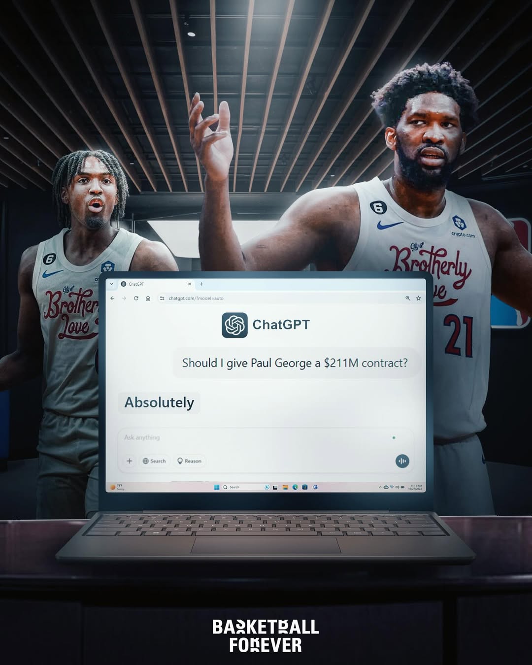 他隨后提到了76人隊使用LLM(大型語言模型)人工智能模型,特別是該團隊愿意嘗試這項技術(shù)的例子。