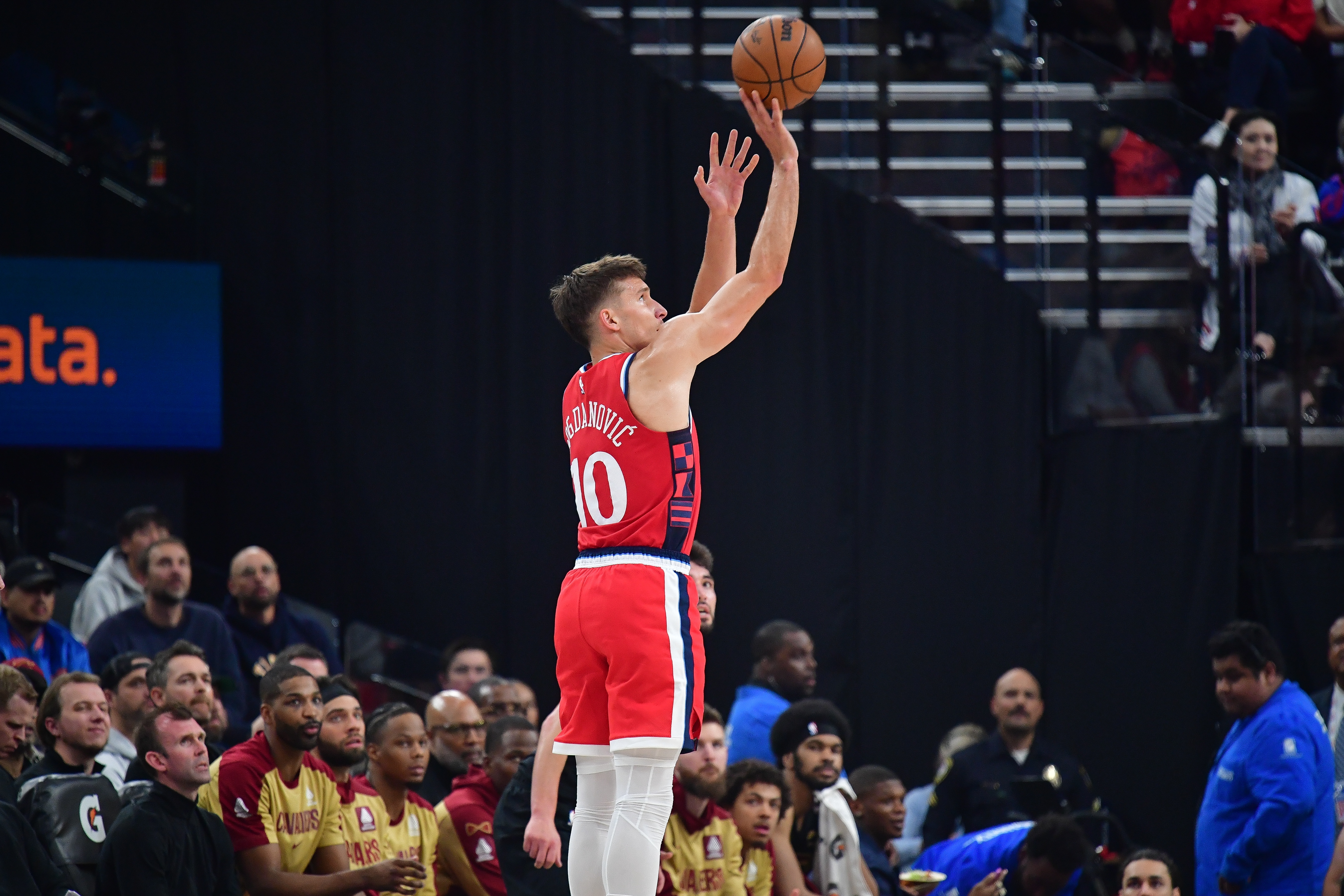 博格丹此役表現(xiàn)出色,進(jìn)攻端手感火熱彈無虛發(fā),在29分半的時(shí)間里,投籃8中8,三分球4中4,高效拿下20分4籃板7助攻1搶斷的數(shù)據(jù),正負(fù)值+19(全場最高)。