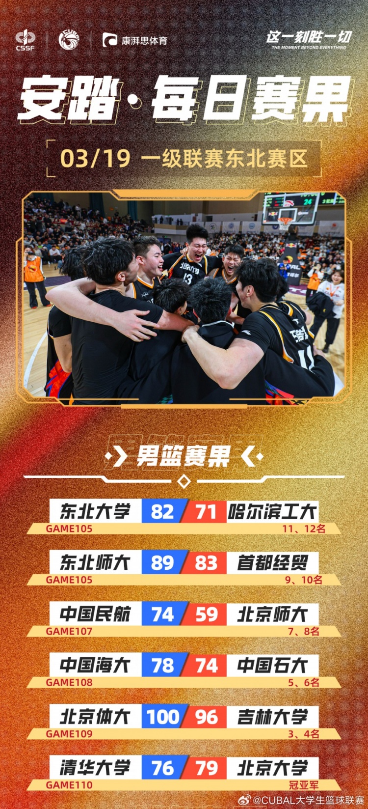 每日賽果!今日,東北賽區(qū)最后一戰(zhàn)已然結(jié)束,吉林大學(xué)向我們展示了一支年輕的隊伍應(yīng)該具備的精神風貌,戰(zhàn)至終章也不曾放棄,雖然最后小部分惜敗于北體,但是相信這次的失敗最終會化成他們成功路上的階梯,沖向更高的位置。而在決賽上,北京大學(xué)時隔6年再次奪得東北王,全民皆兵的氣魄與落后時的冷靜,相信今年的北大已經(jīng)將目光放到了最終舞臺! 本文標簽: 籃球 CUBAL 中國籃球