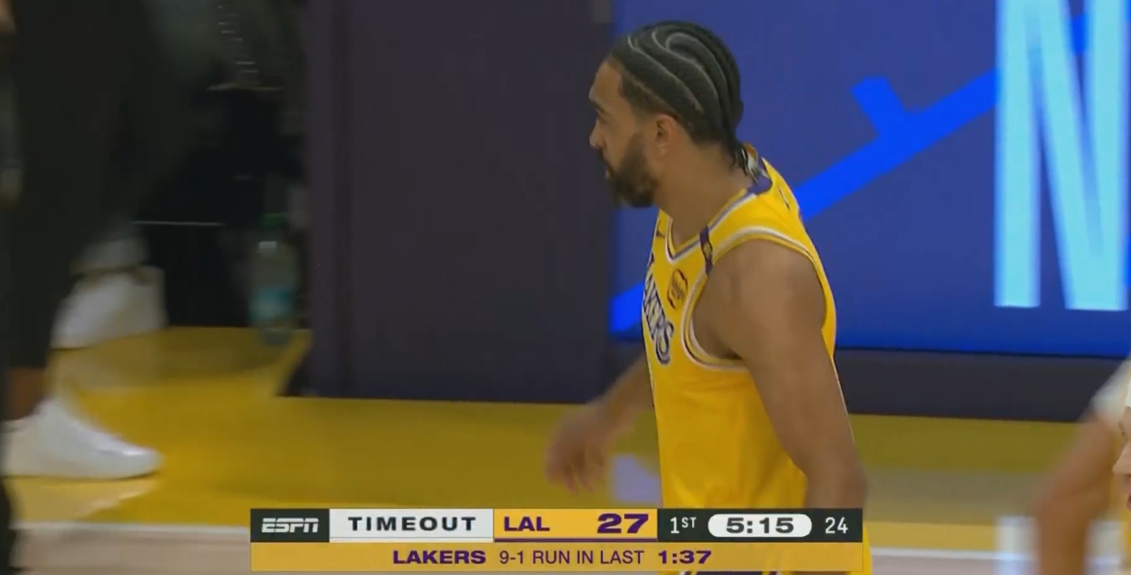 東契奇超遠三分+文森特自信遠投 湖人1分37秒一波9-1打停掘金