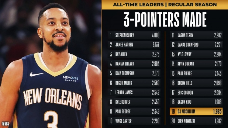 3月20日訊 鵜鶘客場挑戰(zhàn)森林狼,CJ迎來里程碑。截至發(fā)稿,CJ命中3記三分,生涯三分命中數(shù)1983,超越諾維茨基升至NBA歷史第19位。目前排在CJ前面的是基德的1988個。 本文標(biāo)簽: 籃球 NBA 鵜鶘