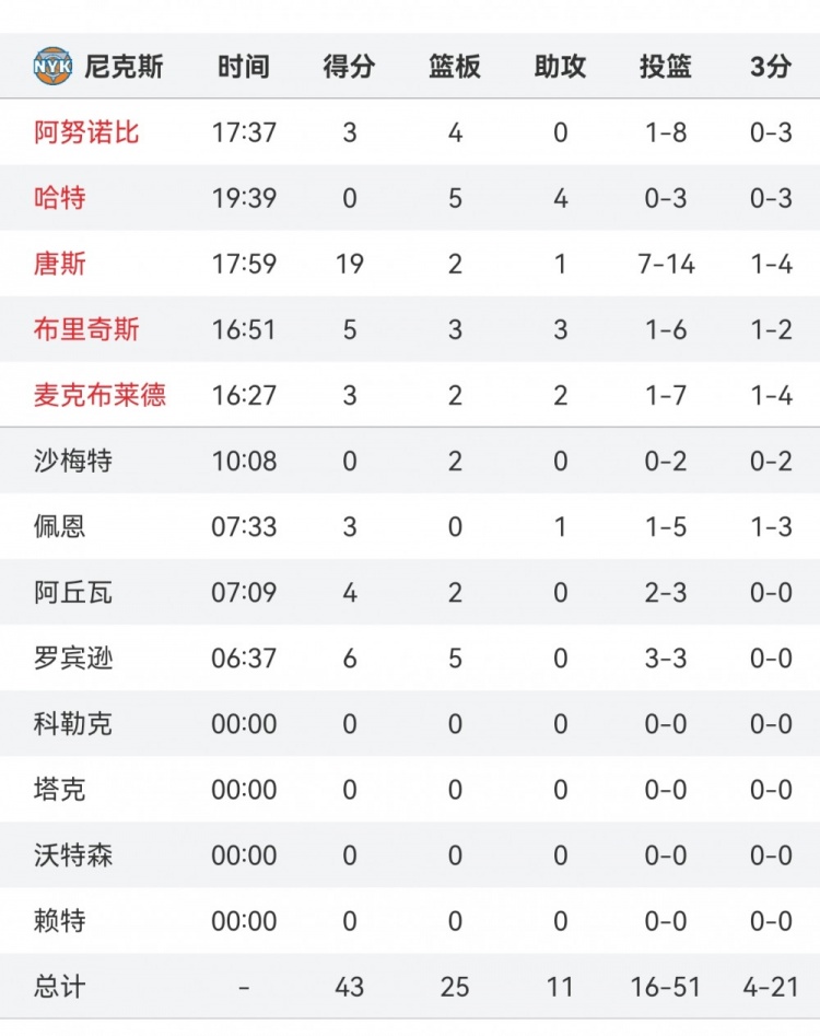 3月20日訊 NBA常規(guī)賽,尼克斯半場43-67落后馬刺。半場比賽,尼克斯首發(fā)除了唐斯以外都表現(xiàn)不佳,投籃共計24中3,共得到11分。 本文標簽: 籃球 NBA 尼克斯 唐斯