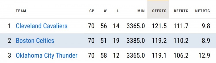 3月22日訊 NBA常規(guī)賽,雷霆在主場(chǎng)141-106大勝黃蜂。到目前為止,雷霆的進(jìn)攻效率為119.1(每百回合得分),高居聯(lián)盟第三,僅次于騎士和凱爾特人;防守效率為106.2(每百回合失分),高居聯(lián)盟第一;凈效率12.9(每百回合凈勝分)也是聯(lián)盟第一。 本文標(biāo)簽: 籃球 NBA 雷霆