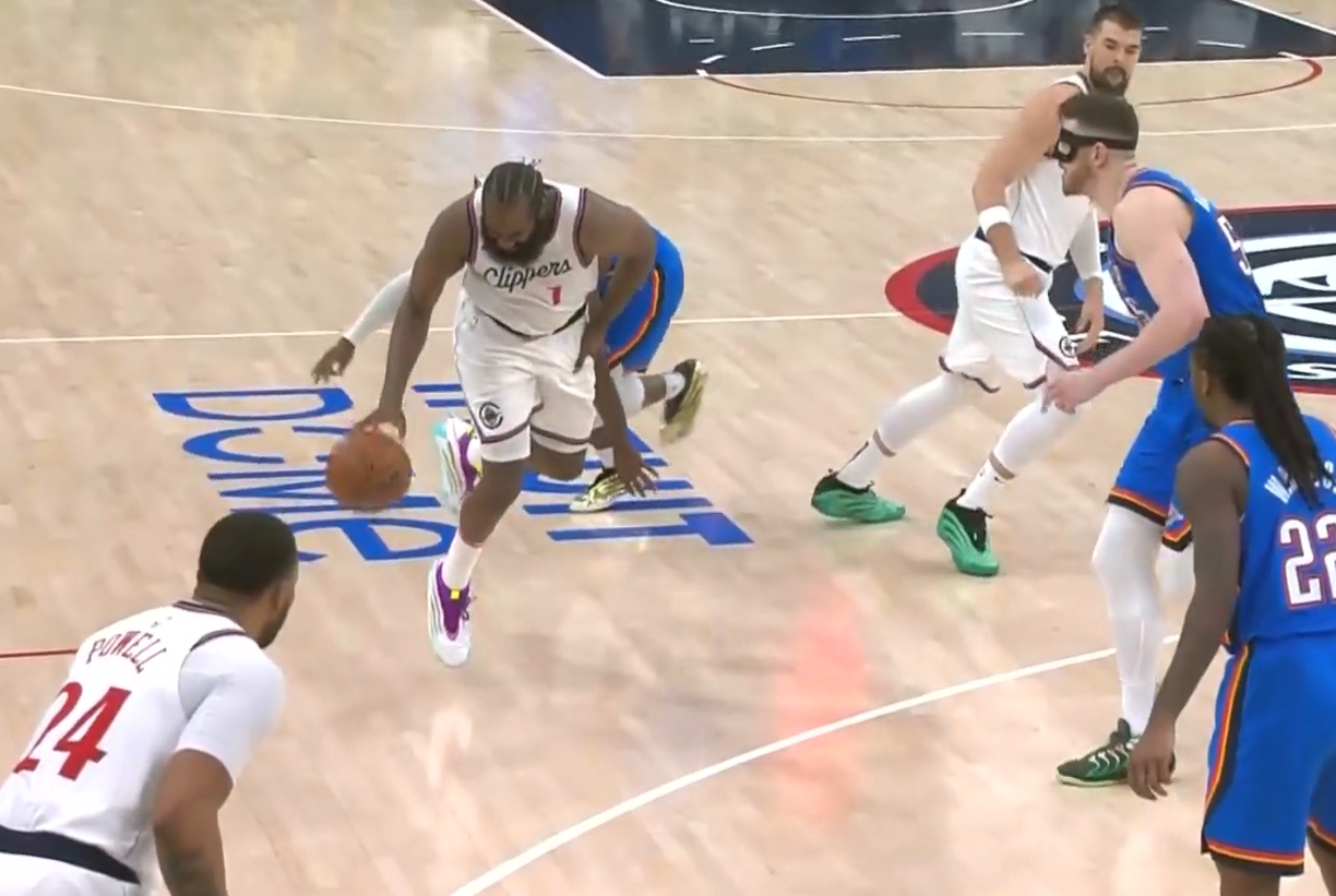 本場(chǎng)比賽第三節(jié)時(shí),哈登被多特貼身頂翻,捂著大腿摔倒在地。賽后,快船主教練泰倫-盧談到哈登受傷情況時(shí)表示:“摔倒時(shí)他輕微扭傷了腳踝,導(dǎo)致了他在最后時(shí)段難以真正地去攻擊籃筐,因此我們只能不斷把球交給科懷(萊昂納德)。希望他沒事,讓我們靜觀其變吧?!?/p>