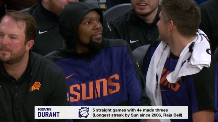 2月1日訊 NBA常規(guī)賽,太陽客場130-105擊敗勇士。杜蘭特本場出戰(zhàn)29分21秒,13投6中(三分9中5)、罰球4中2,拿下19分6籃板3助攻1搶斷1蓋帽。轉(zhuǎn)播方曬出數(shù)據(jù),這是杜蘭特連續(xù)5場比賽至少投進4記三分。這是太陽隊史自2006年的拉加-貝爾以來,最長的紀錄。 本文標簽: NBA 籃球 太陽 杜蘭特