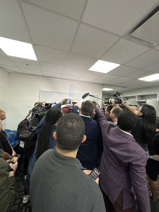 比賽結(jié)束后,巴特勒的采訪現(xiàn)場被媒體圍得水泄不通。