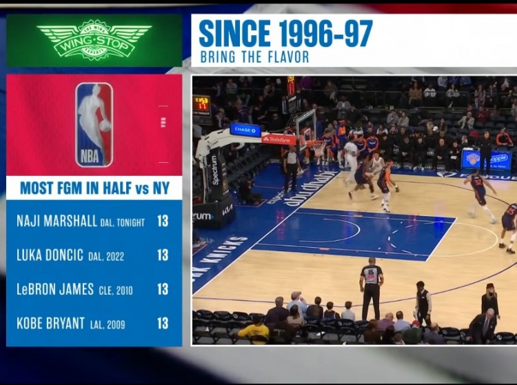 據(jù)統(tǒng)計(jì),自1996-97賽季(有統(tǒng)計(jì))以來,馬紹爾在對陣尼克斯的半場進(jìn)了13球,追平了科比、詹姆斯和東契奇,并列第一。