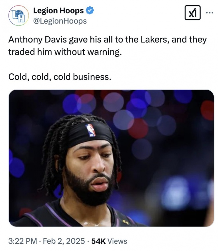 對此,美媒發(fā)推表示:“濃眉把一切都獻(xiàn)給了湖人,但他們卻毫無征兆地把他交易了。這筆交易太讓人心寒?!?/span>