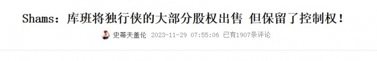 值得一提的是,2023年11月29日,Shams報(bào)道,庫(kù)班將獨(dú)行俠的大部分股權(quán)出售,賣給了米麗婭姆-阿德?tīng)柹约鞍⒌聽(tīng)柹易澹乐荡蠹s在35億美元。