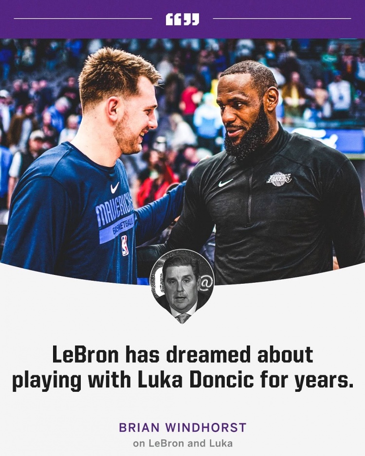 名記Windhorst在節(jié)目中說道:“詹姆斯想和東契奇合作已經(jīng)好幾年了,這是他特別特別想的事情?!?/p>