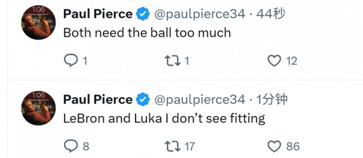 名宿皮爾斯發(fā)推寫道:“我認為詹姆斯和東契奇不合適,他倆都需要大量持球?!?/p>