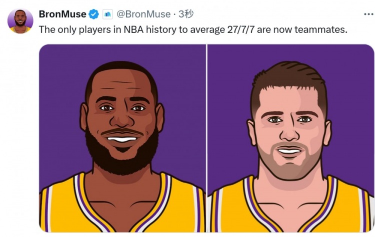 - 歷史唯二!美媒:詹姆斯&東契奇生涯場均至少27分7板7助 如今聯(lián)手