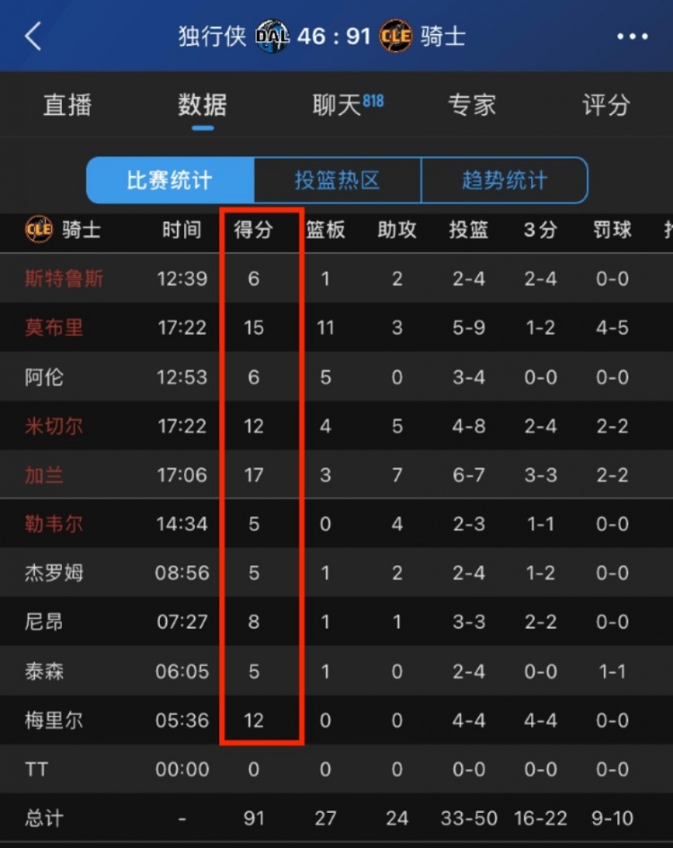 2月3日訊 NBA常規(guī)賽,騎士半場91-46領(lǐng)先獨行俠。上半場比賽,騎士全員狀態(tài)炸裂,進攻端幾乎是誰打誰有,尤其外線各種三分雨效率很高,首節(jié)就轟下50分,次節(jié)再轟下41分,半場領(lǐng)先對手45分之多!其中,騎士上半場10人進入輪換,10人皆有得分入賬,最低分都得到5分,且10人中有4人得分上雙:加蘭17分,小莫布里15分,米切爾和梅里爾都是12分。 本文標簽: NBA 籃球 騎士 米切爾