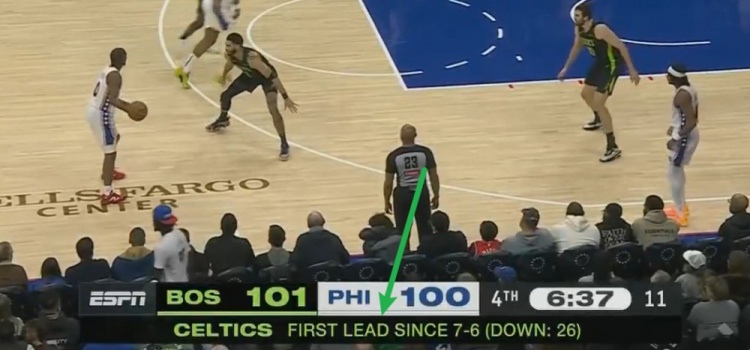 最多曾落后26分!塔圖姆連中三分率隊(duì)反超 綠軍7-6后首次領(lǐng)先
