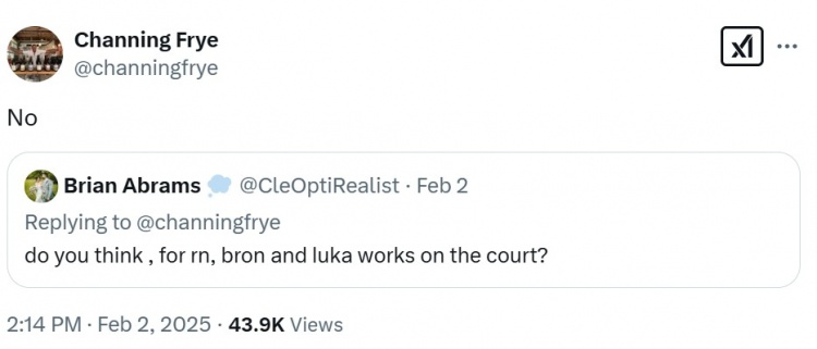 詹姆斯的前隊(duì)友錢寧-弗萊回答網(wǎng)友問答,當(dāng)被問及勒布朗和東契奇的組合在場(chǎng)上能否奏效時(shí),他的回答是不能。