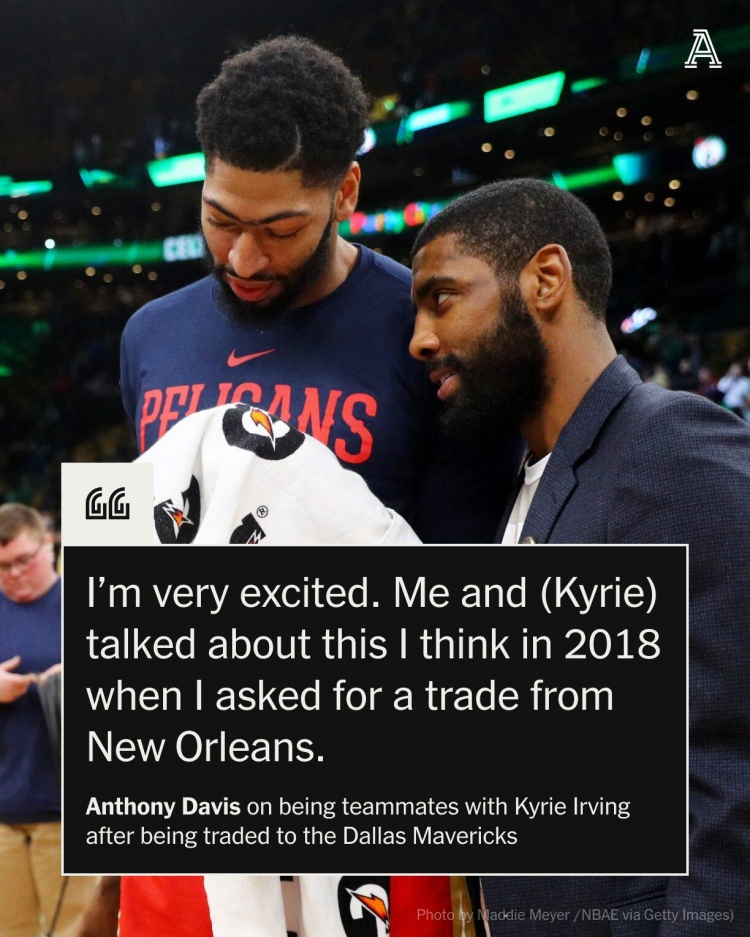 談到和歐文搭檔,濃眉說道:“我感覺很興奮。我2018年在鵜鶘申請交易的時候就和歐文談論過這件事。我們一直想一起打球。現(xiàn)在我們有機會這樣做了?!?/p>