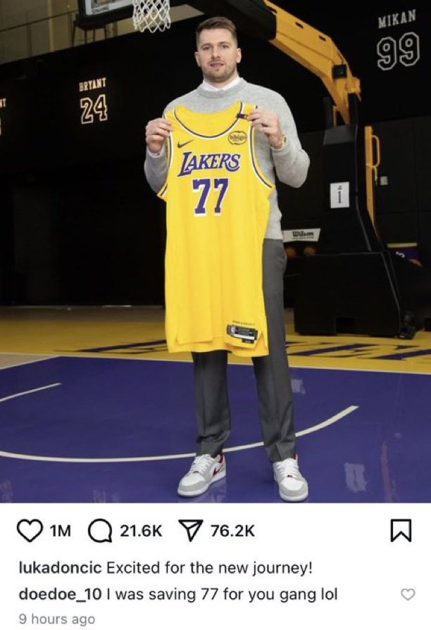 隨后到了昨天,東契奇曬出了自己手持湖人球衣的圖片,芬尼-史密斯在其底下評(píng)論:兄弟,77號(hào)是我留著給你來穿的,哈哈哈。
