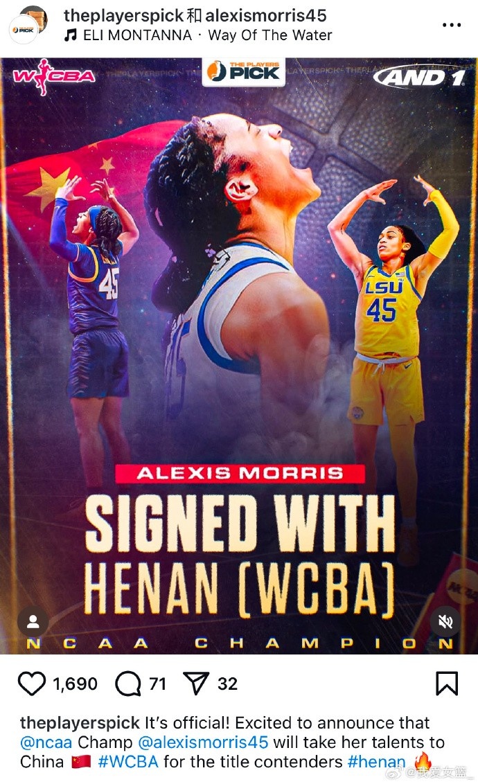 昨天深夜,據(jù)經(jīng)紀公司ThePlayersPick消息,原路易斯安那州立大學女籃后衛(wèi)艾里克西斯-莫里斯簽約河南女籃。艾里克西斯身高1米75,今年25歲,曾隨路易斯安那州立大學女籃奪得2023年NCAA全國冠軍。2023年WNBA選秀總第22順位被康涅狄格太陽隊選中。