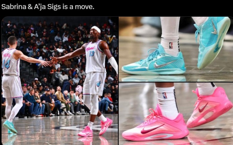 2月9日訊 今天,球鞋記者Nick DePaula曬出了昨天阿德巴約的比賽圖片。圖片中,阿德巴約上腳了其女友,WNBA王牌的中鋒阿賈-威爾遜的簽名球鞋。而阿賈也來現(xiàn)場觀戰(zhàn)了熱火的比賽。另外,希羅上腳了紐約自由人明星薩布麗娜-約內(nèi)斯庫的簽名鞋,薩布麗娜2代。阿賈簽名鞋薩布麗娜2代 本文標簽: NBA 籃球 熱火 WNBA