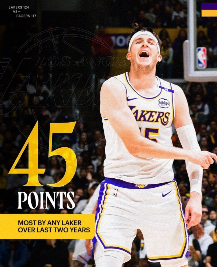 2月9日訊 NBA常規(guī)賽,湖人在主場以124-117擊敗步行者。此役,里夫斯出戰(zhàn)40分30秒,投籃26中14,三分9中4,罰球13中13,得到45分7籃板7助攻3搶斷。據(jù)統(tǒng)計,45分是近兩年湖人球員單場最高分(詹姆斯最高42分、濃眉最高也是42分)。而上次有湖人球員單場砍45+要追溯到2023年1月25日,當時詹姆斯得到46分。 本文標簽: NBA 籃球 湖人 詹姆斯 戴維斯
