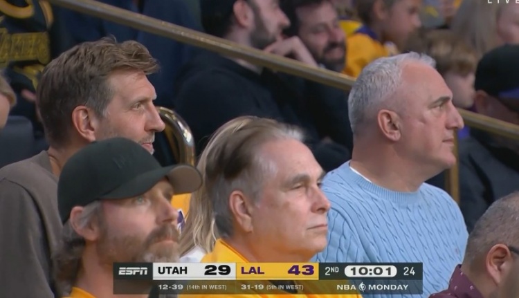 有壓力不?東契奇父親也來到現(xiàn)場 和德克一起共同觀戰(zhàn)東契奇首秀