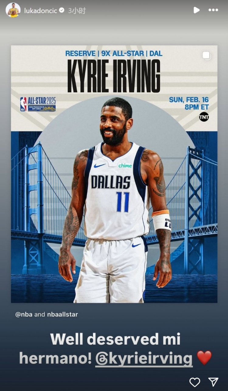 - 歐文遞補(bǔ)進(jìn)入全明星!東契奇送祝賀:實至名歸??