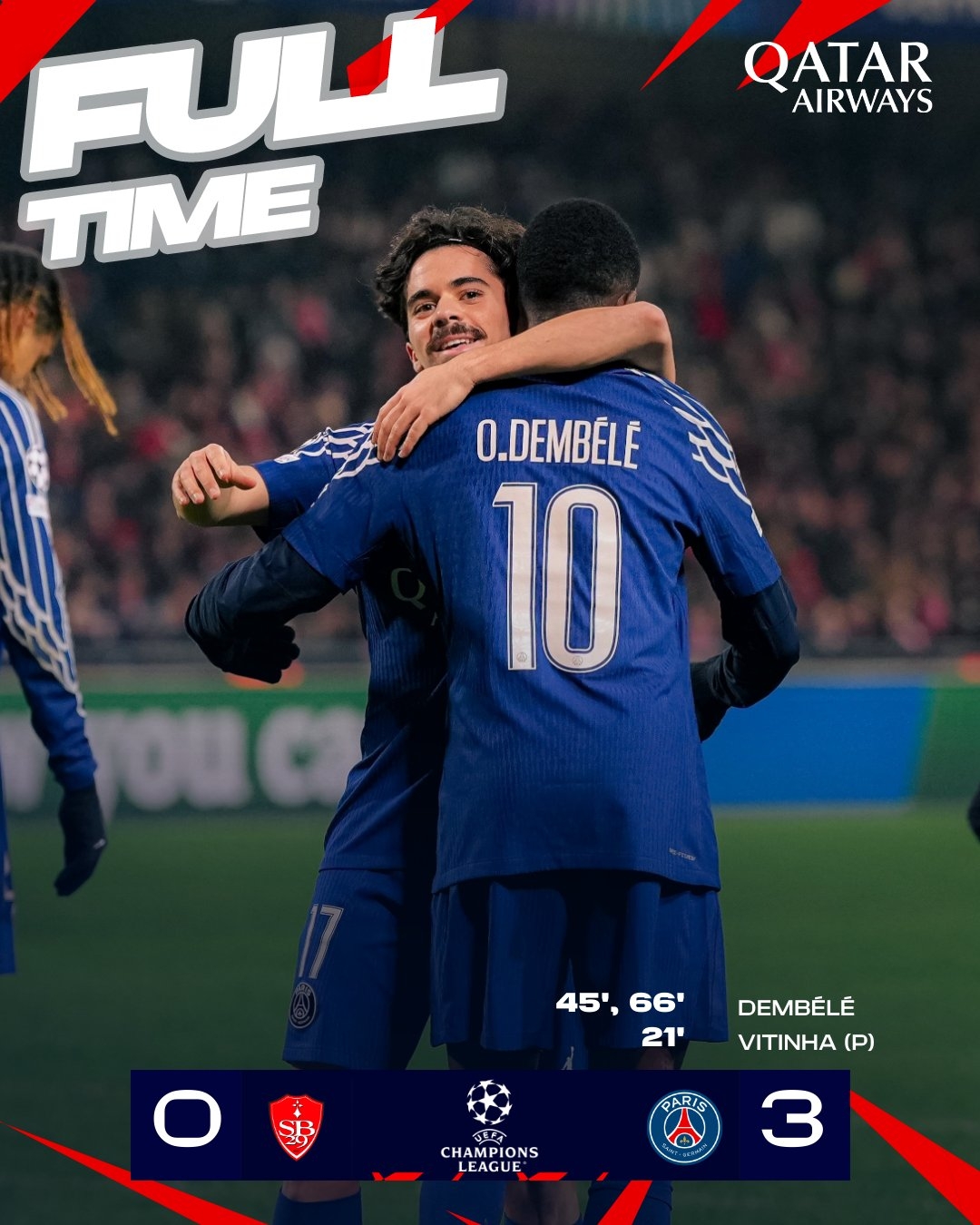 02月12日訊 歐冠附加賽巴黎3-0擊敗布雷斯特,登貝萊本場獨造三球:造點+雙響。