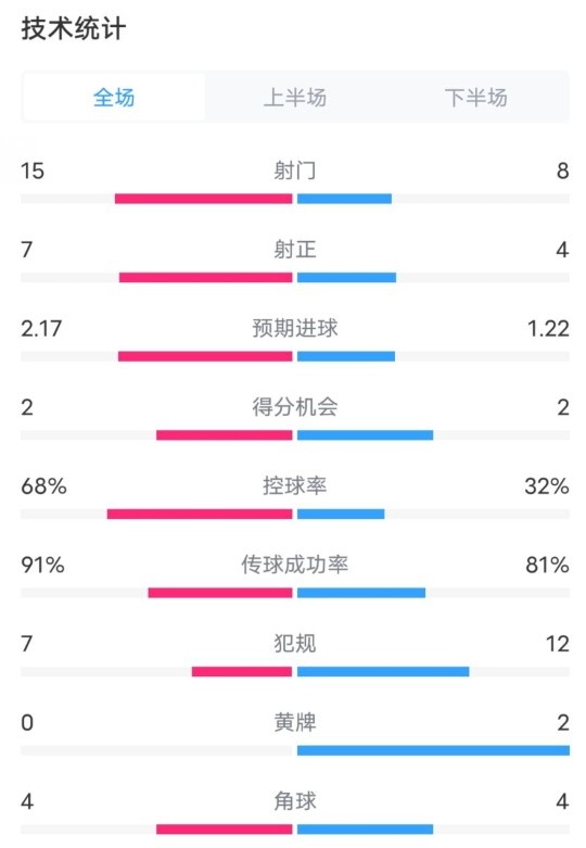 全場(chǎng)比賽數(shù)據(jù)如下(巴薩在前):