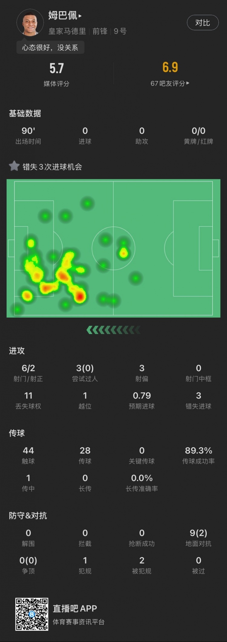 1月30日訊 在剛剛結(jié)束的歐冠聯(lián)賽階段最后一輪比賽中,皇馬客場3-0擊敗布雷斯特。本場比賽,姆巴佩發(fā)揮欠佳,評分僅5.7,全場最低。