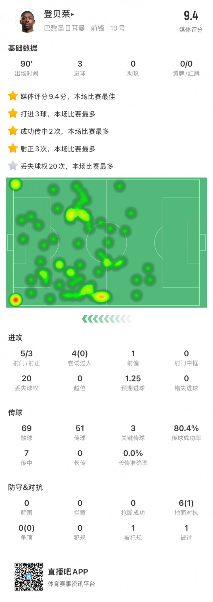 1月30日訊 歐冠最后1輪比賽,巴黎4-0斯圖加特,登貝萊上演帽子戲法。登貝萊全場數(shù)據(jù):打進(jìn)3球5次射門3次射正4次過人0次成功69次觸球51次傳球41次成功3次關(guān)鍵傳球7次傳中2次成功6次地面對抗贏得1次1次被犯規(guī) 本文標(biāo)簽: 足球 法甲 巴黎圣日耳曼 歐冠