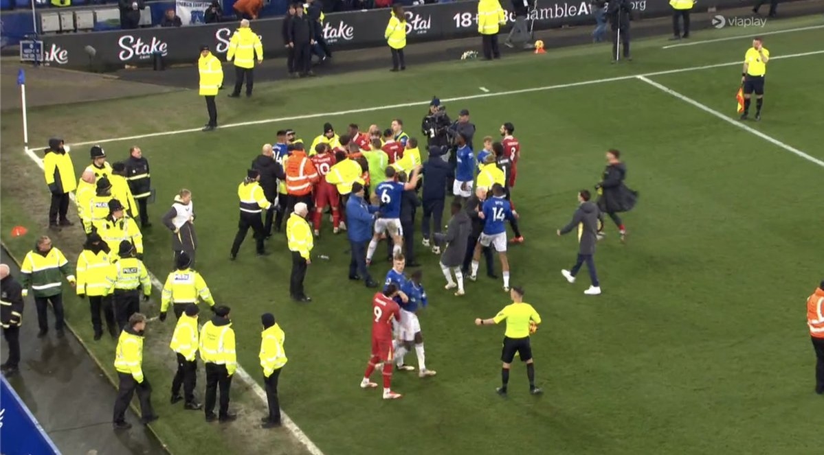 賽后兩隊(duì)發(fā)生沖突,沖突中利物浦主帥斯洛特、埃弗頓球員杜庫雷被紅牌罰下。